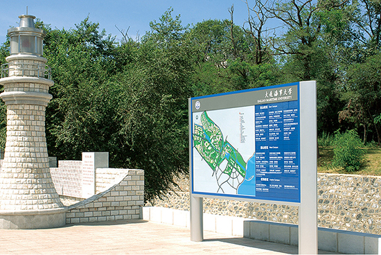 校園環(huán)境標(biāo)識(shí)導(dǎo)向應(yīng)當(dāng)從外環(huán)境入手。甚至可以在校園外交通道路兩旁市政允許的情況下設(shè)置校園戶外形象標(biāo)識(shí);可以設(shè)想作為一個(gè)從來沒有進(jìn)入過該校園的人,如何依靠信息完整、方位指示明確的標(biāo)識(shí)輕松尋找目的地,而不是見人就問路,見路口就停步,從校門開始,就要首先明確學(xué)校名稱,認(rèn)清校名標(biāo)識(shí);一個(gè)對(duì)校園環(huán)境一無所知的人,先想看到的是校園的總平面圖,以便明確大方向,因此,入口處的校園總圖標(biāo)識(shí)必不可少;有了對(duì)總圖的初步認(rèn)識(shí),繼而依次根據(jù)校園交通道路指引標(biāo)識(shí)、道路分流標(biāo)識(shí)、道路名稱標(biāo)識(shí)、樓宇場(chǎng)館名稱標(biāo)識(shí)到達(dá)目的地。此外,校園公共服務(wù)設(shè)施標(biāo)識(shí)(報(bào)亭、停車場(chǎng)—入口/停車導(dǎo)視、電話亭、洗衣房、書店、活動(dòng)中心、便利店、銀行、公共浴室、ATM機(jī)、開水間、商務(wù)中心等)、交通指示標(biāo)識(shí)(標(biāo)準(zhǔn))等也是導(dǎo)向中不可或缺的部分。