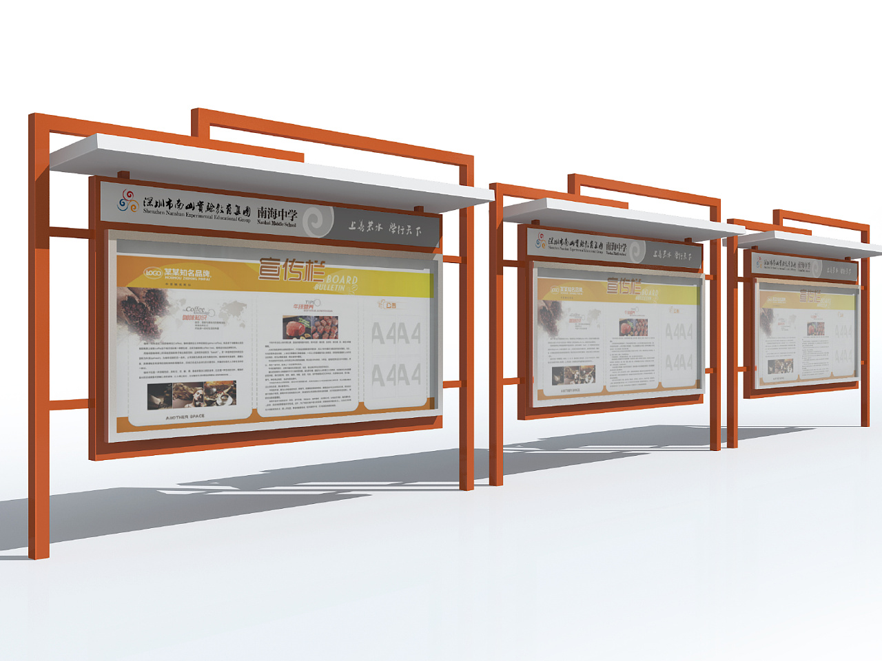 為了遮擋陽光和雨水,宣傳欄一般會(huì)有頂棚。